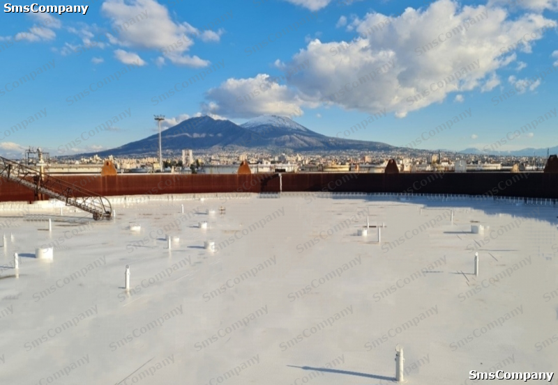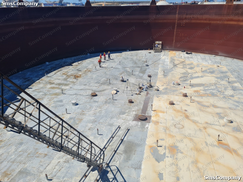 Di seguito possiamo osservare la preparazione e la verniciatura del tetto galleggiante per un serbatoio da 18.000 m3. 🪖